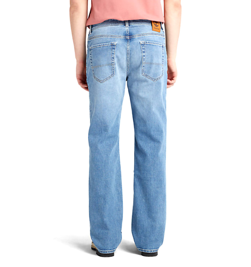 Удобные мужские джинсы Timberland эластичного прямого кроя, классической формы и стиля. Джинсы изготовлены из джинсовой ткани, в состав которой входит органически выращенный хлопок, также имеют традиционную конструкцию с пятью карманами и ширинку на молнии.