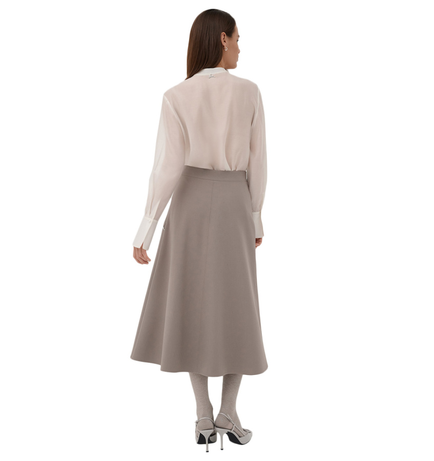 Женственная юбка-миди бежевого оттенка. Модель универсального А-силуэта стандартной посадки с подкладкой.