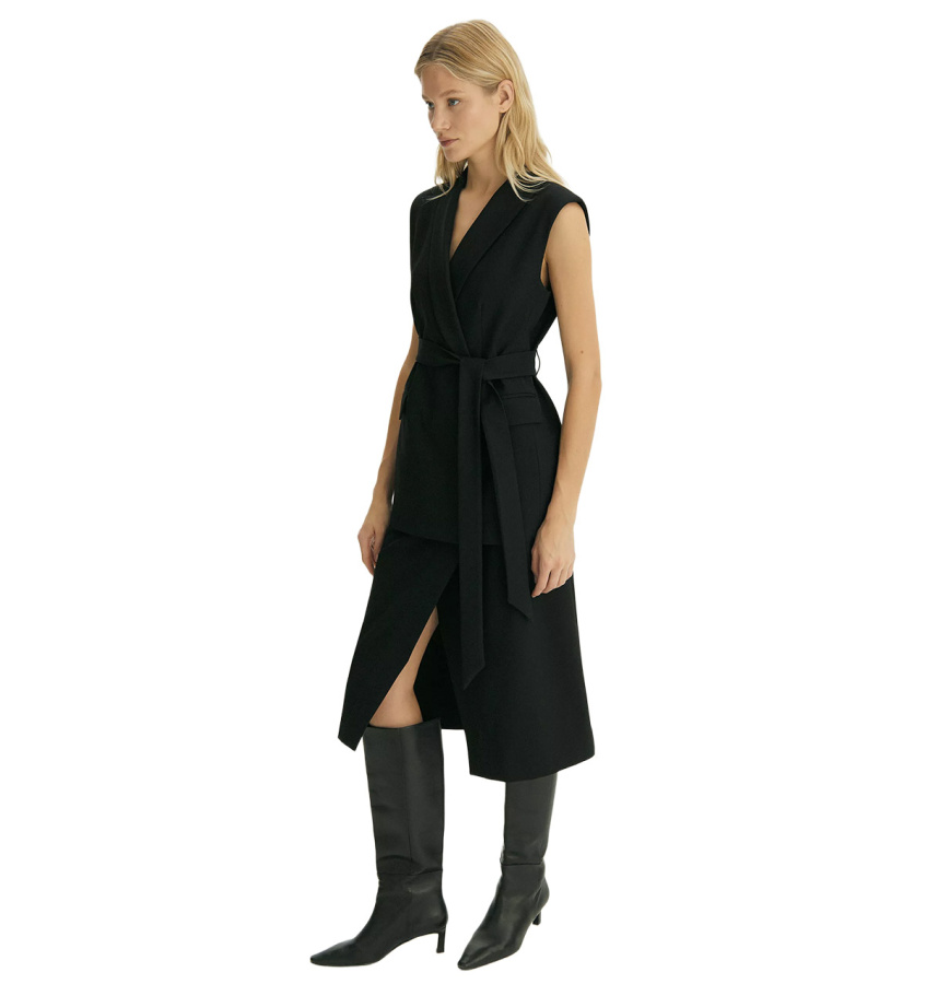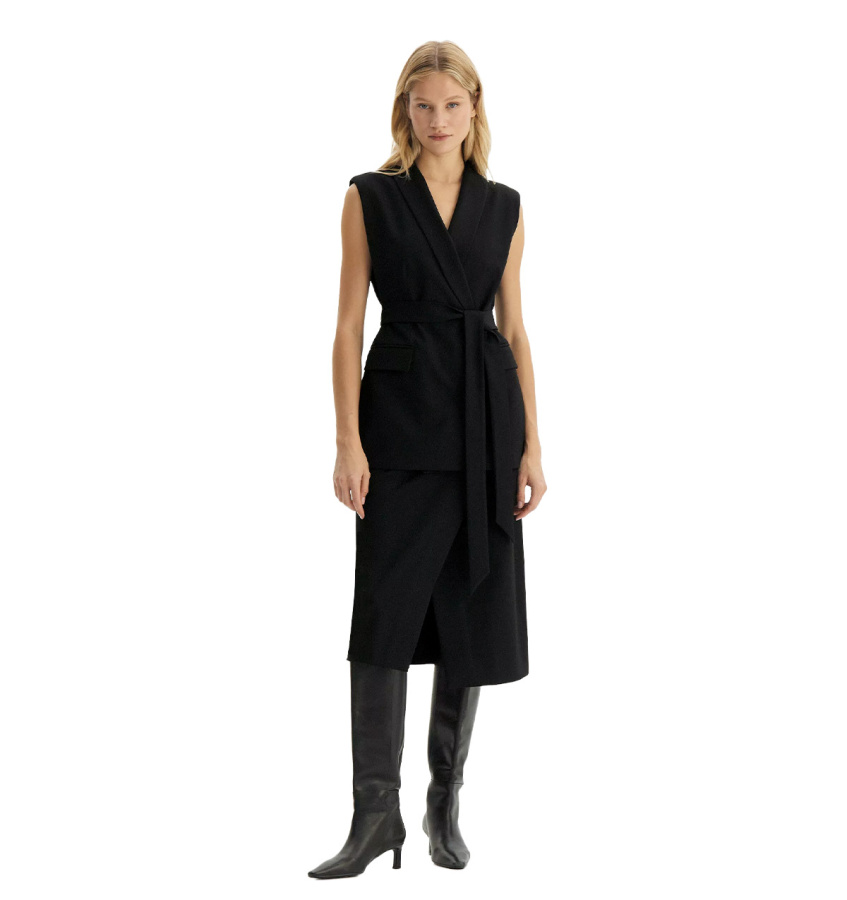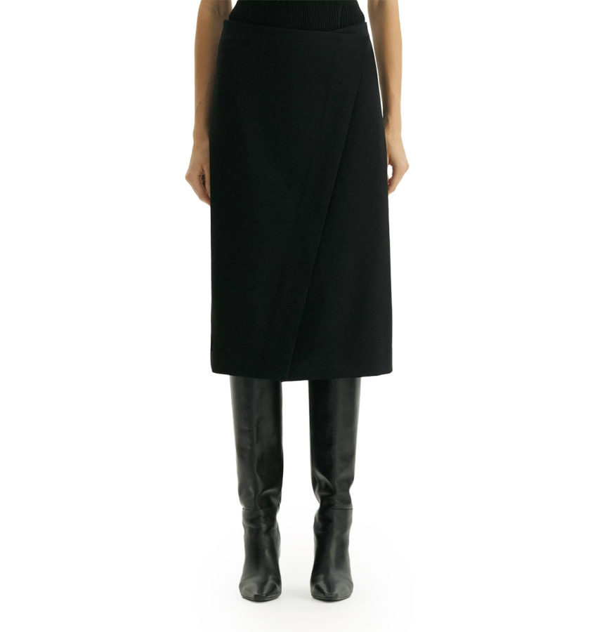Чёрная юбка для образов к любому случаю. Приталенный силуэт элегантно подчёркивает фигуру, ткань с высоким содержанием вискозы, приятна на ощупь. Фальш-запах добавляет оригинальности классическому крою. Юбка легко комбинируется с пиджаком из той же коллекции, создавая гармоничный и продуманный образ. Модное решение для деловых образов и повседневных стилизаций. Выполнена из приятной костюмной ткани, на подкладке с вискозой. Юбка может стать основой капсулы с брюками и жакетом monk.