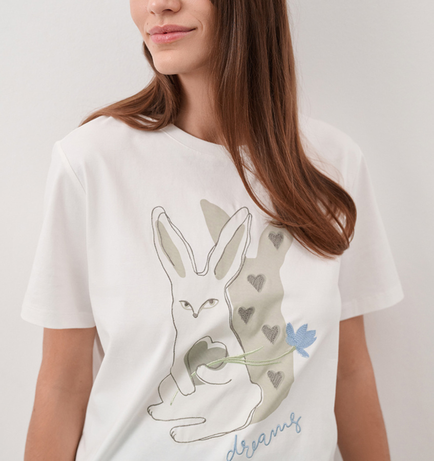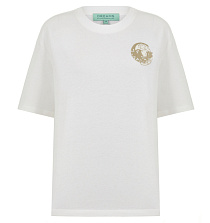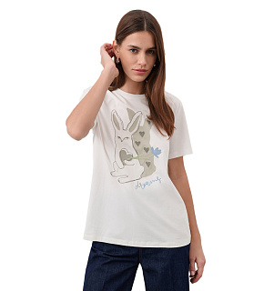 Белая футболка из высококачественного хлопка с авторским принтом. Модель классического прямого кроя с круглым вырезом отлично дополнит повседневный или спортивный гардероб.
