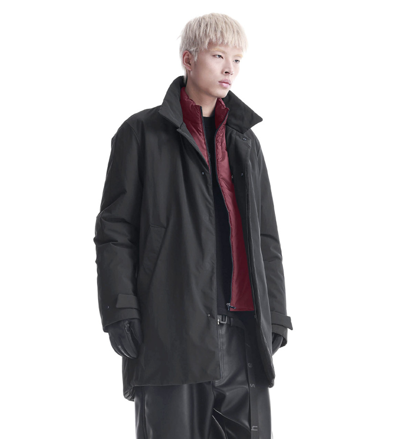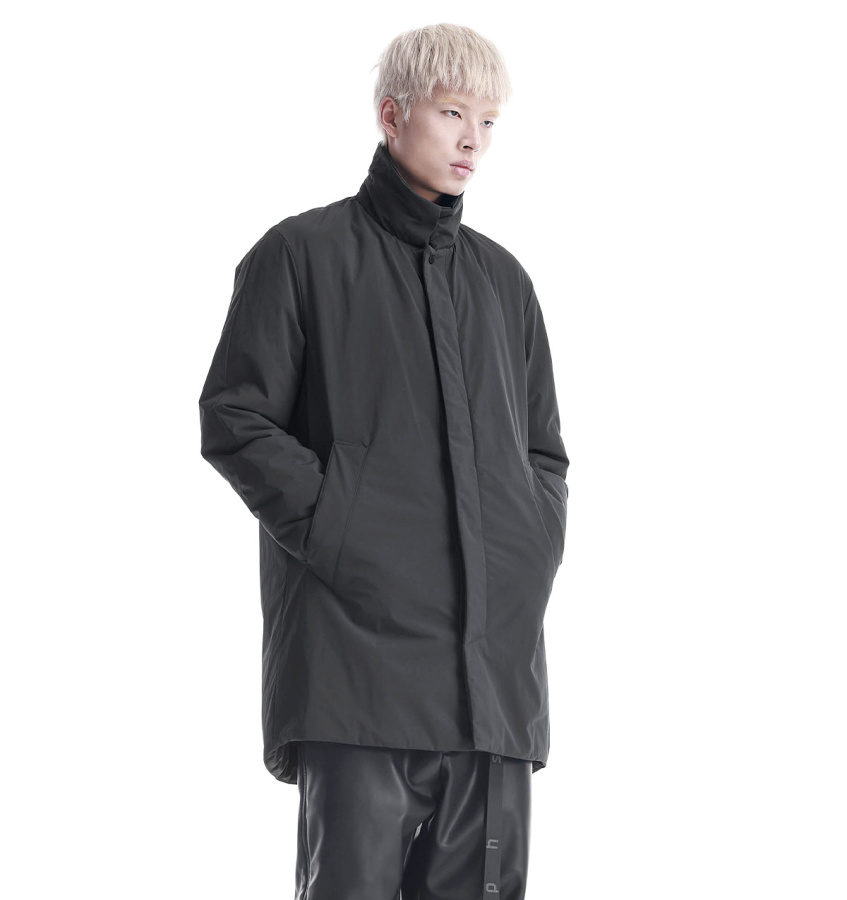 Тренч Krakatau BLERIOT из водостойкой функциональной ткани. Утеплитель из переработанного полиэстера сохраняет тепло и форму без лишнего объёма. Застёжка на кнопках и магнитах удобна даже в перчатках, внутренняя планка защищает от ветра. Карманы на магнитах, скрытая сетка для мелочей, регулируемые манжеты и шлица сзади — каждый элемент работает на комфорт и свободу движений.