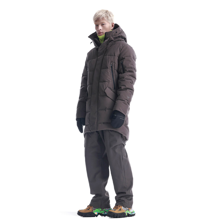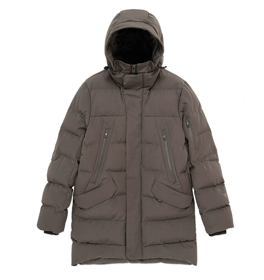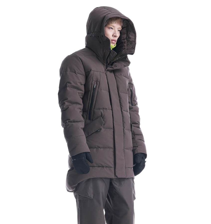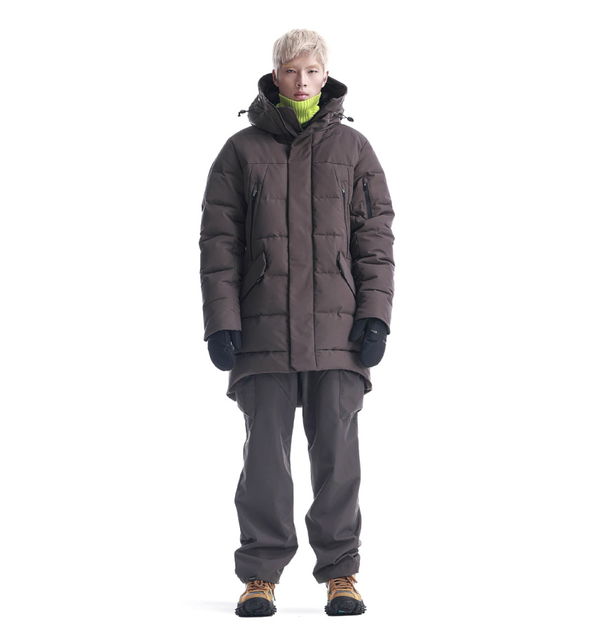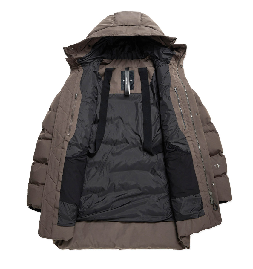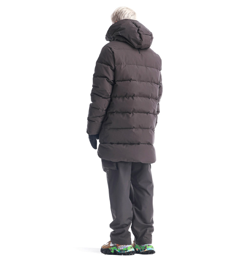 Удлинённый пуховик Krakatau STROFO из функциональной водостойкой ткани. Утеплитель сочетает натуральный пух и синтетическое волокно — лёгкий, тёплый, устойчивый к влаге и сохраняет форму. Капюшон с дополнительной защитой лба, карманы с двойными клапанами, смарт-карман на рукаве и встроенные стропы для ношения за плечами — каждый элемент рассчитан на надёжность, посадку и удобство в движении.