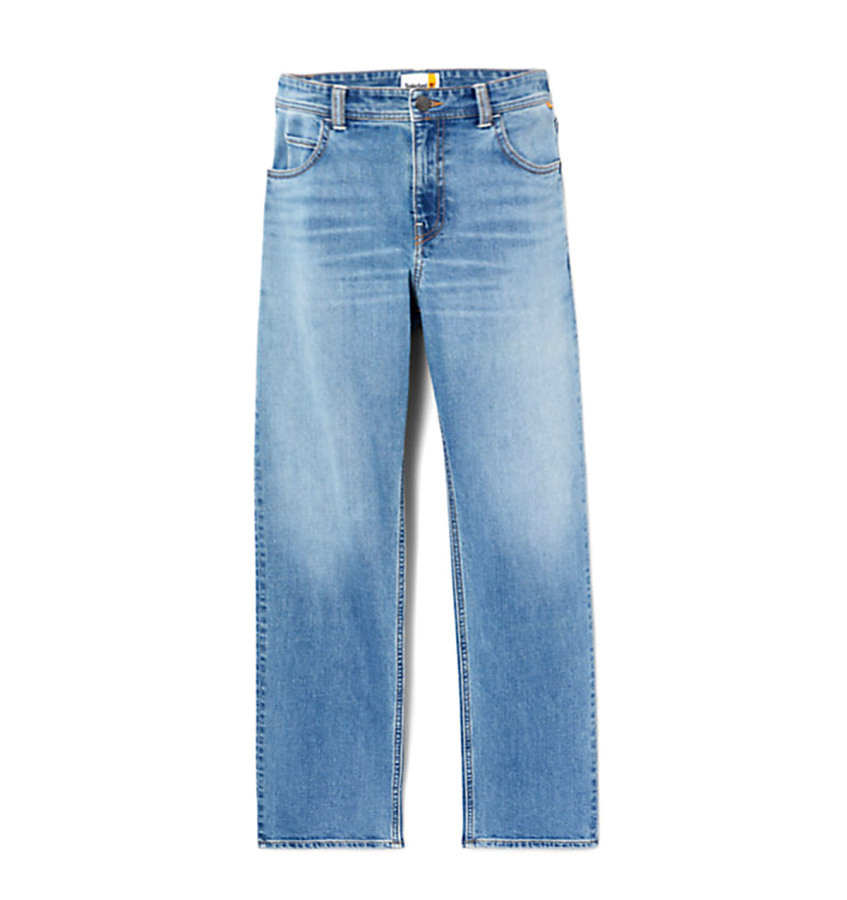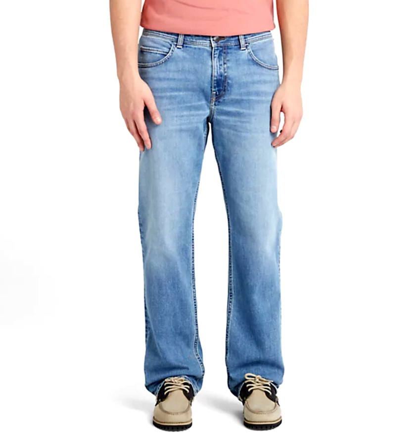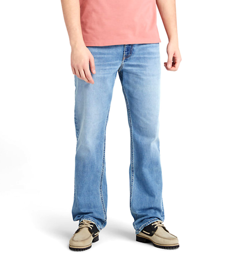 Удобные мужские джинсы Timberland эластичного прямого кроя, классической формы и стиля. Джинсы изготовлены из джинсовой ткани, в состав которой входит органически выращенный хлопок, также имеют традиционную конструкцию с пятью карманами и ширинку на молнии.