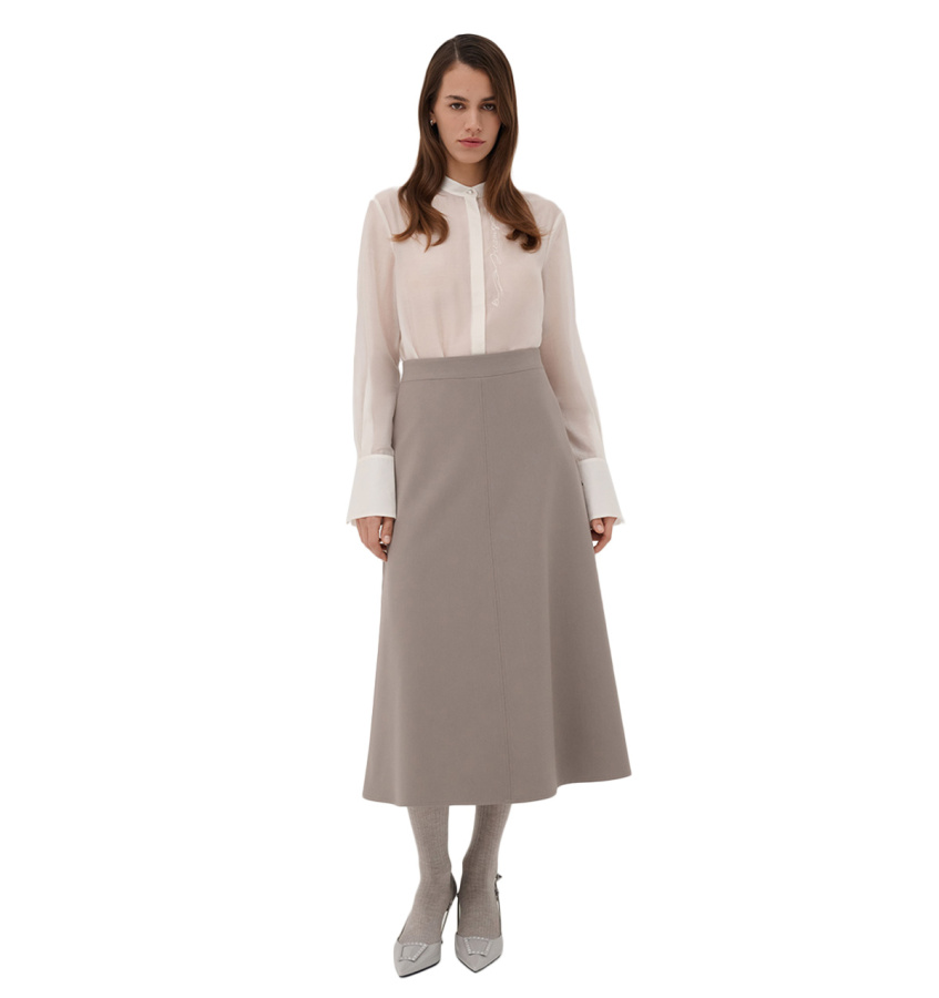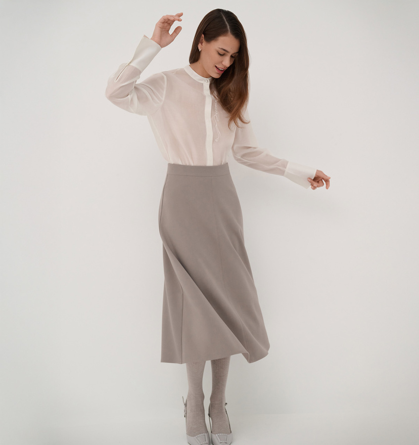 Женственная юбка-миди бежевого оттенка. Модель универсального А-силуэта стандартной посадки с подкладкой.