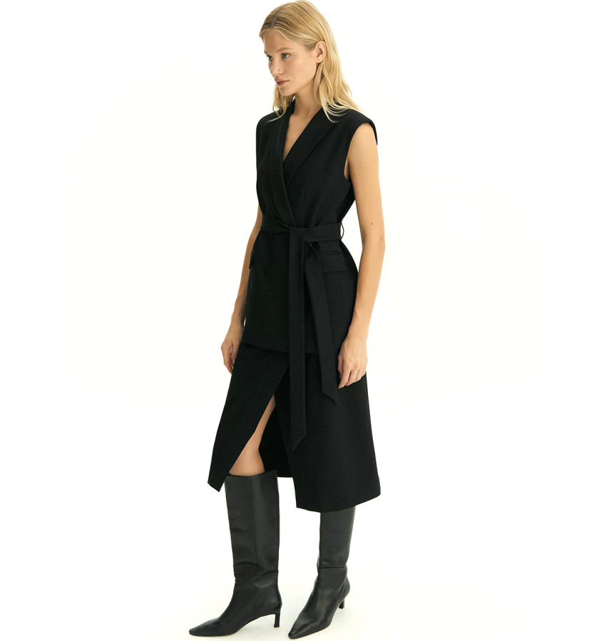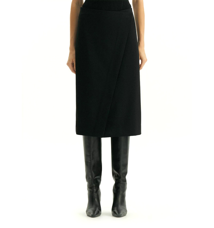 Чёрная юбка для образов к любому случаю. Приталенный силуэт элегантно подчёркивает фигуру, ткань с высоким содержанием вискозы, приятна на ощупь. Фальш-запах добавляет оригинальности классическому крою. Юбка легко комбинируется с пиджаком из той же коллекции, создавая гармоничный и продуманный образ. Модное решение для деловых образов и повседневных стилизаций. Выполнена из приятной костюмной ткани, на подкладке с вискозой. Юбка может стать основой капсулы с брюками и жакетом monk.