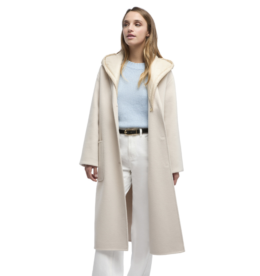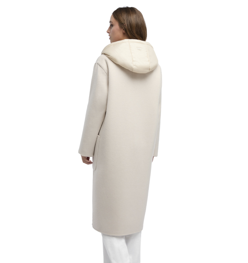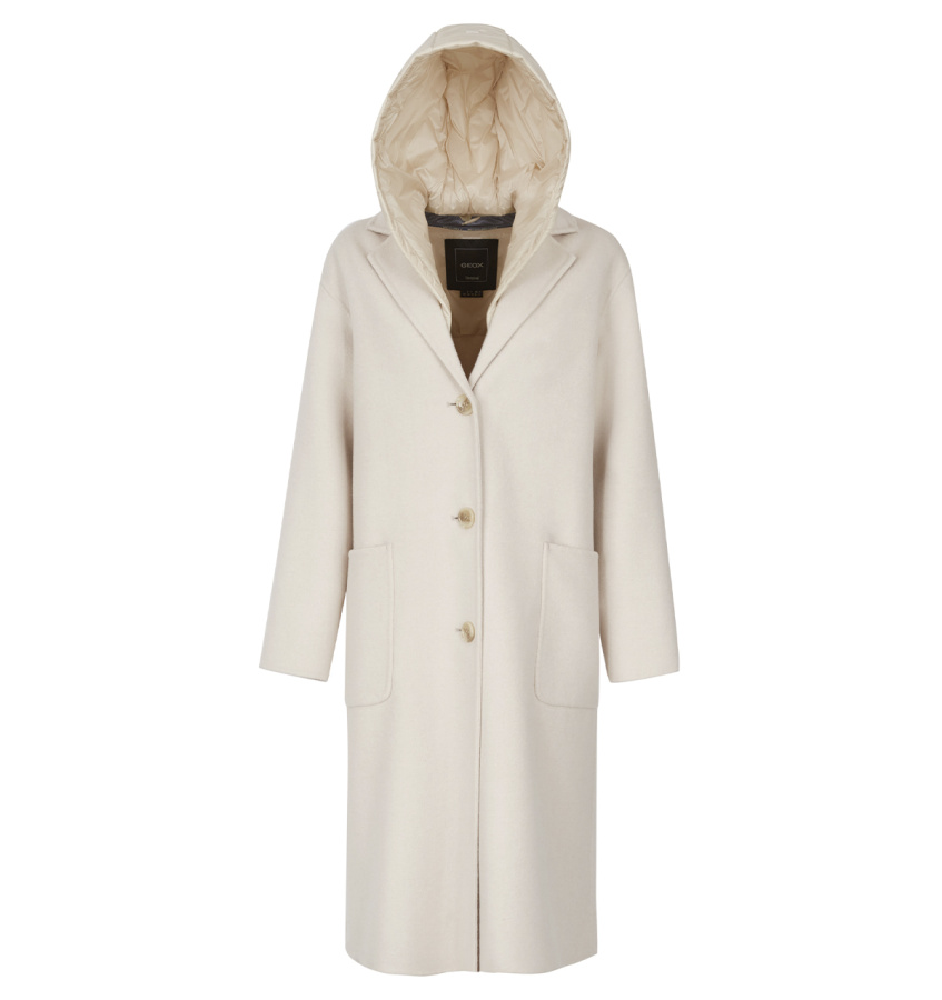 Удлинённое пальто Geox современного дизайна с воротником-лацканами, элегантным силуэтом и ветрозащитной отделкой идеально подходит для осеннего сезона. Эта стильная модель выполнена из изысканной шерстяной ткани светло-бежевого цвета и дополнена удобным и практичным съёмным капюшоном с утеплителем. Модель Rawelle идеально дополнит повседневный городской образ и дополнена утеплителем EcologicWARM, обеспечивающим максимальный комфорт и воздухопроницаемость.