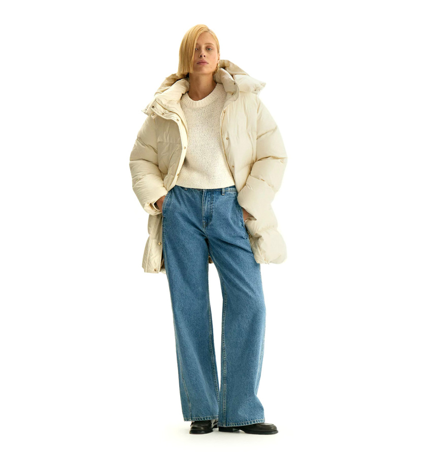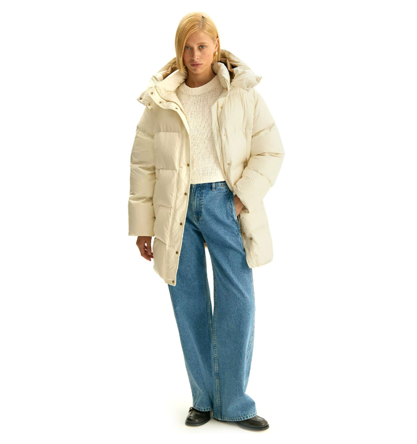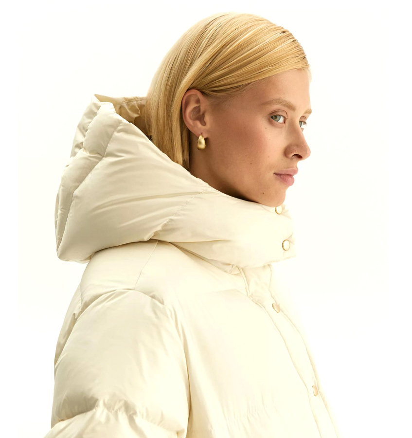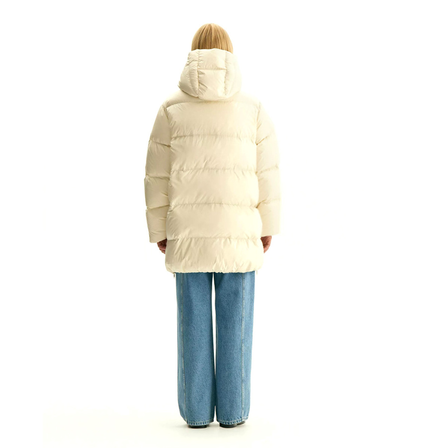 Пуховик утеплён наполнителем с 90% натурального пуха и 10% пера. Рассчитан на температуры до -15°C. Имеет водоотталкивающую пропитку.