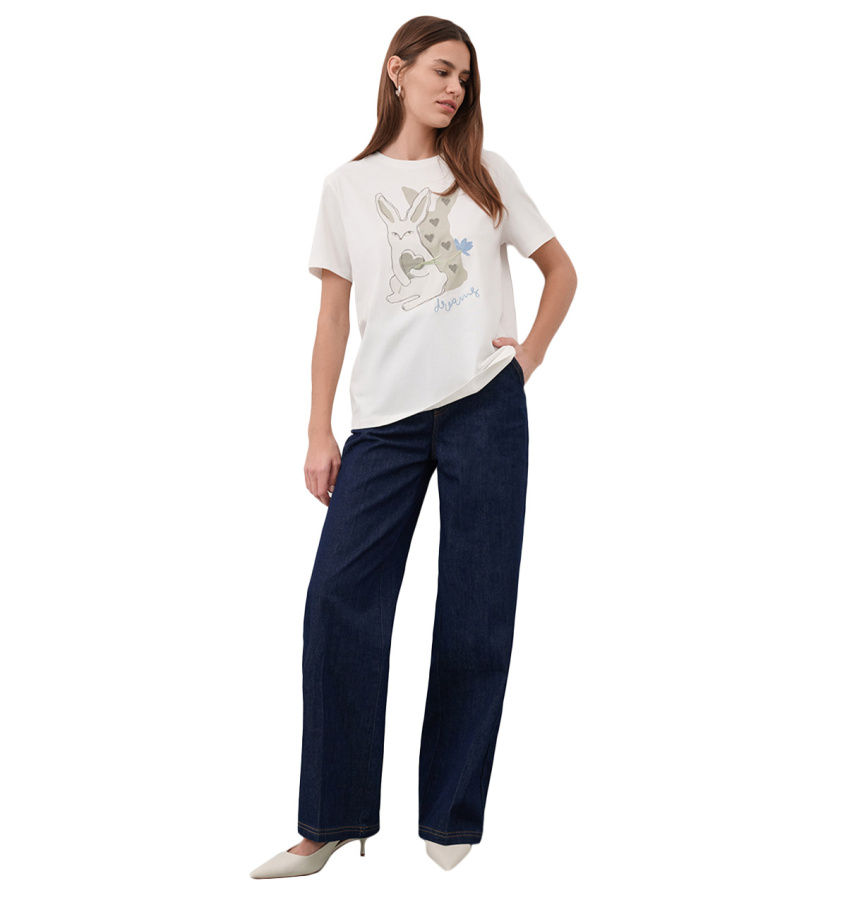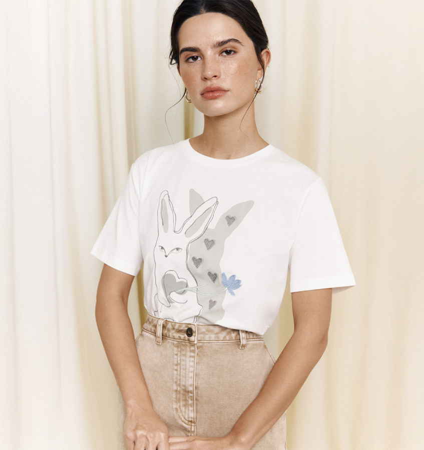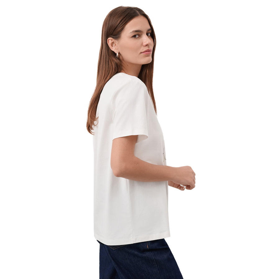 Белая футболка из высококачественного хлопка с авторским принтом. Модель классического прямого кроя с круглым вырезом отлично дополнит повседневный или спортивный гардероб.