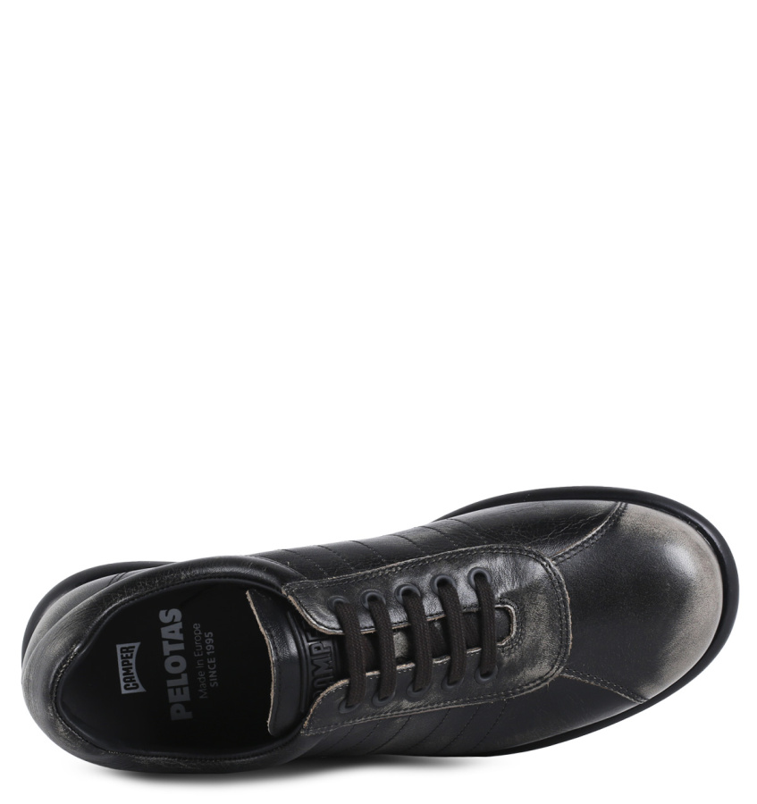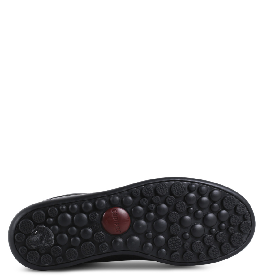 Культовая модель Camper Pelotas появилась в 1995 году, название переводится с испанского - «мячи». На создание кроссовок дизайнеров марки вдохновили форма и фактура старинных мячей ручной работы.