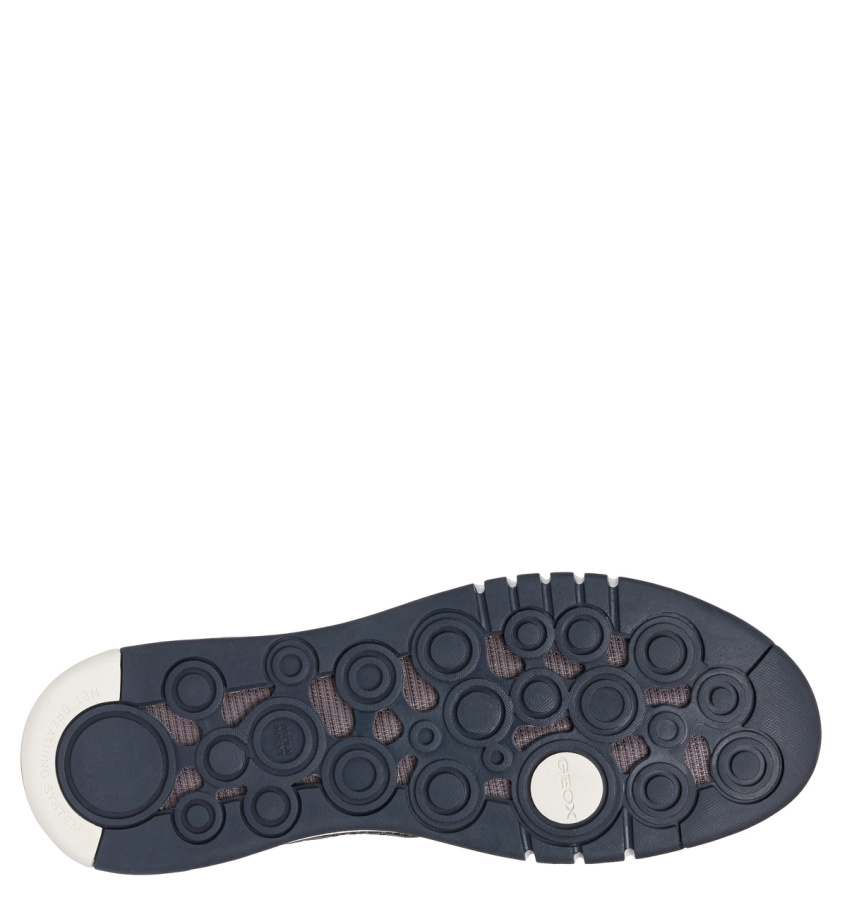 Дышащие мужские сникеры Aerantis — олицетворение новейших технологий Geox. Инновационный современный дизайн с экологическим подходом идеально дополняет повседневную одежду для работы или досуга. Модель отличается шнуровкой с эластичными шнурками, которая позволяет легко надевать и снимать обувь. Используется сетчатая ткань из переработанной полиэстеровой пряжи, целиком полученной из пластиковых бутылок. Модель Aerantis подтверждает приверженность Geox защите окружающей среды. Исключительно удобная модель Aerantis сочетает в себе легкость, гибкость и превосходные амортизационные свойства благодаря промежуточной подошве из материала EVA, которая поглощает ударную нагрузку. Резиновый протектор с круглыми вставками обеспечивает оптимальное сцепление с любой поверхностью. Модель Aerantis представляет собой сочетание технологий и инновационных решений, придающих обуви дышащие свойства. Революционная система Ventilaction System активируется во время движения, повышая внутреннюю циркуляцию воздуха и обеспечивая максимальную воздухопроницаемость вокруг стопы. Подкладка, изготовленная по технологии Inner Breathing System, обладает оптимальными дышащими свойствами для терморегуляции стопы, а технология Net Breathing System обеспечивает циркуляцию воздуха благодаря перфорированной воздухопроницаемой подошве.